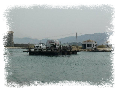 Bei der kleinen Fähre über den Vivar-Kanal fand unser kleiner Schorsch noch einen Platz, bevor es weiter über Schotterpisten durch das Hinterland nach Delvine zum Syri i Kalter - The Blue Eye ging.