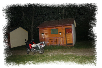 Da es mittlerweile dunkel geworden ist, beschließen wir die Zelte nicht mehr aufzubauen und mieten uns eine der kleinen Blockhütten für runde 20 Euro die Nacht. Die ungarischen Forint will hier keiner, der Euro ist auch in Ungarn mittlerweile ein beliebtes Zahlungsmittel. Da der Campingplatz leider kein Restaurant hat, müssen wir uns nochmal in die Sättel der Maschinen schwingen und in die Ortschaft rein fahren. Ein Restaurant ist schnell gefunden. Obwohl offiziell schon geschlossen, werden wir trotzdem noch bewirtet. Auch warme Gerichte werden uns noch angeboten. Ungarische Gastfreundschaft. Die ungarische Küche ist rustikal und herzhaft. Und sie besteht überwiegend aus Fleischgerichten, nicht unbedingt ein Land für Vegetarier. Trotzdem findet sich mindestens ein fleischloses Gericht auf der Speisekarte. Wir versuchen die ungarische Küche zu genießen, nur leider machen uns die Moskitos den Aufenthalt auf der rustikalen Terrasse zur Hölle. Also, schnell essen und ein Bierchen trinken und dann nichts wie weg, zurück zum Campingplatz, in unsere Blockhütte mit den Moskitonetzen vor den Fenstern.
