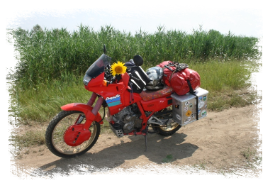 Unsere alten Motorräder wurden reisetauglich gemacht, beide bekamen frische Ölfilter und gutes, teures westeuropäisches Öl (gibt es das wirklich nicht in Osteuropa?), die Luftfilter wurden noch einmal ausgeblasen und die Reifen erneuert. Da wir ja nicht wussten was auf uns zukam, nahmen wir die komplette Campingausrüstung mit. Besser autark bleiben, man weiß ja nie. Es konnte los gehen.